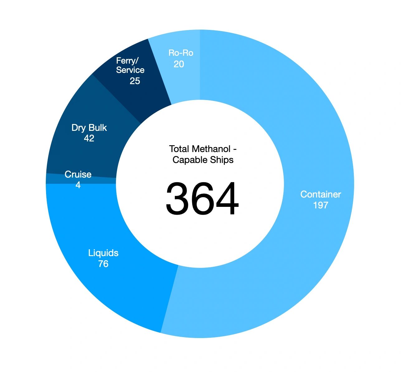 Carbon Sink tracks the number of ships that are currently "on-the-water" or on order that can use methanol as a replacement fuel for conventional fuels.